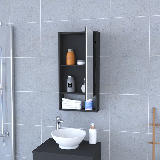 "Stylish and Functional Medicine Cabinet with External Shelf in Sleek Black Wengue Finish - Irvine Collection"