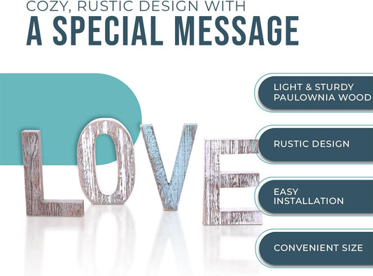 "Rustic Love Letters: Charming Blue, White, and Grey Wall Décor - Perfect Farmhouse Accent for Your Living Room"