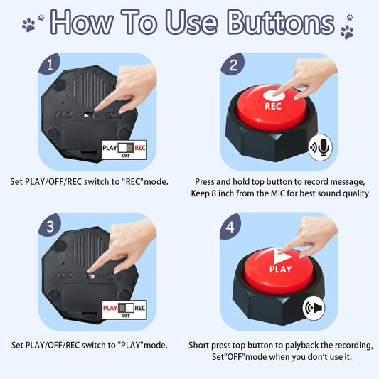 "Enhance Your Dog Training with Our Recordable Buzzer Set - Personalize Commands and Messages - 10 Seconds Playback - Vibrant Green and Purple Buttons - Set of 2"